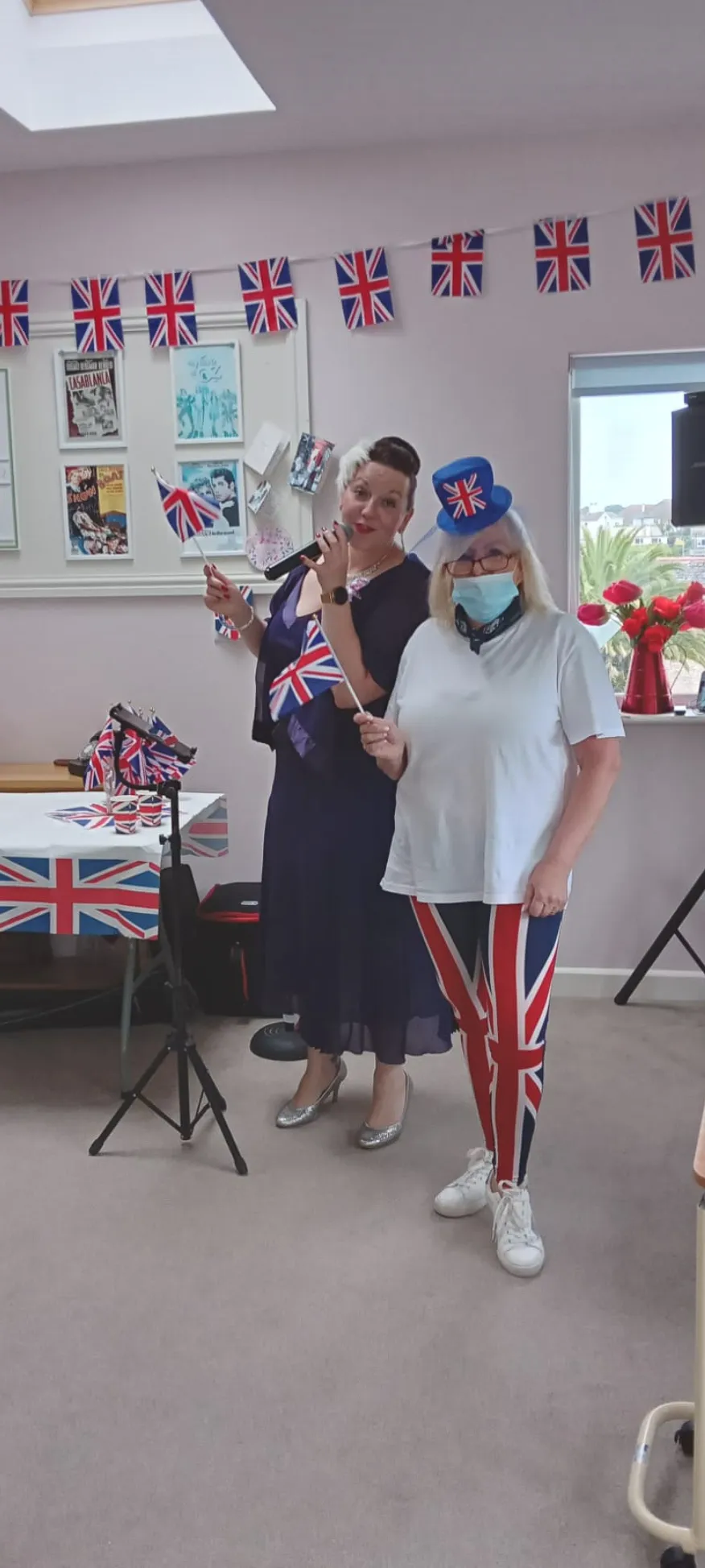 We celebrated Her Majesty Queen Elizabeth’s Platinum Jubilee in style with Samantha Montini singing songs from the 1950s, cream teas supplied by our amazing kitchen staff, thank you Kye and Julie in her very becoming union jack leggings! Everyone had a wonderful time.